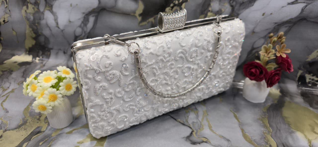 کیف مجلسی گل برجسته دسته مرواریدی