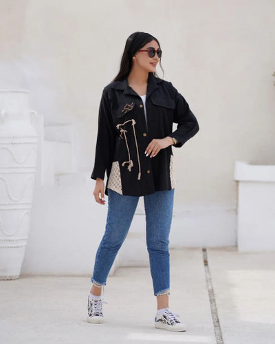 مانتو زنانه جلو باز خامه دوزی پولکی
