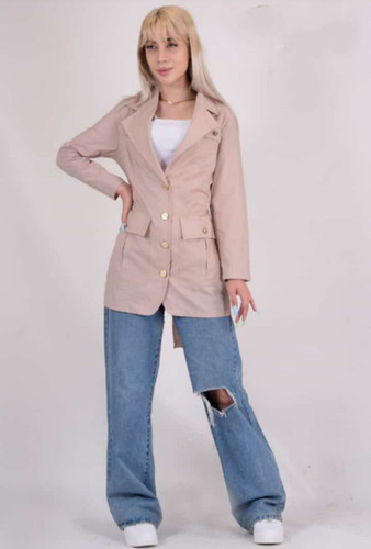 مانتو دخترانه کتان دکمه ای بلند