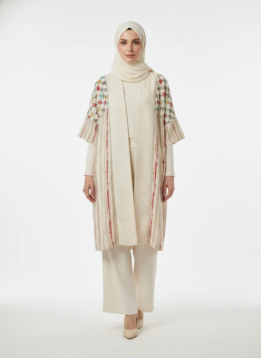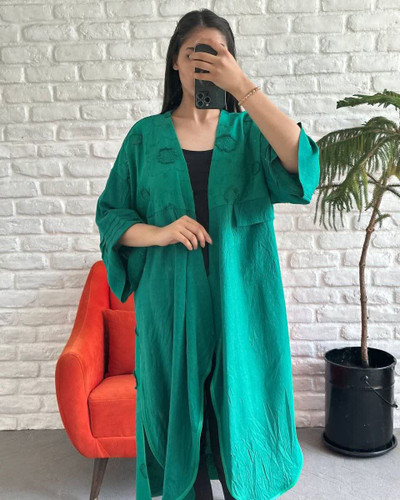مانتو زنانه عبایی بلند خامه دوزی جلو غزن دار