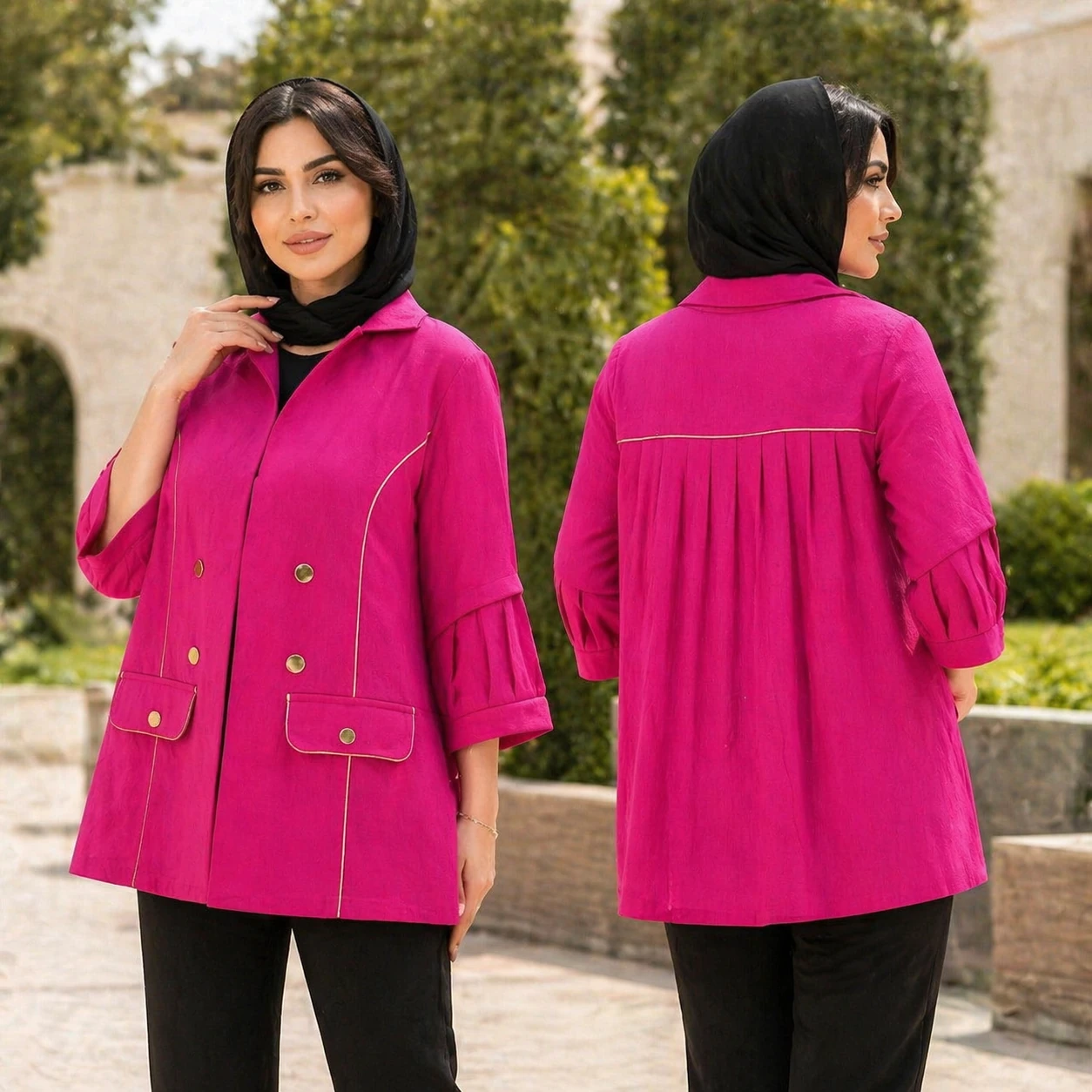 مانتو دخترانه دانشجویی مدل دکمه ای کوتاه