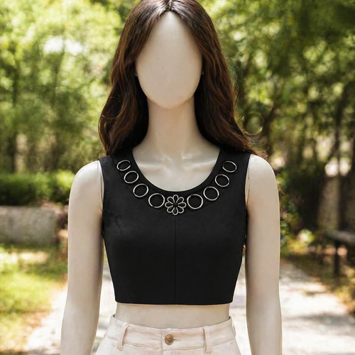 کراپ دخترانه آستین حلقه ای مجلسی سگکک گلدار