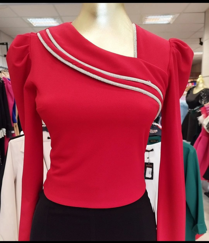 شومیز دخترانه توپ توپی آستین دار کمر کش قرمز
