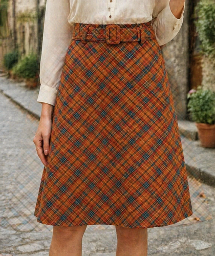 دامن دخترانه نیم کلوش چهارخونه کمربنددار