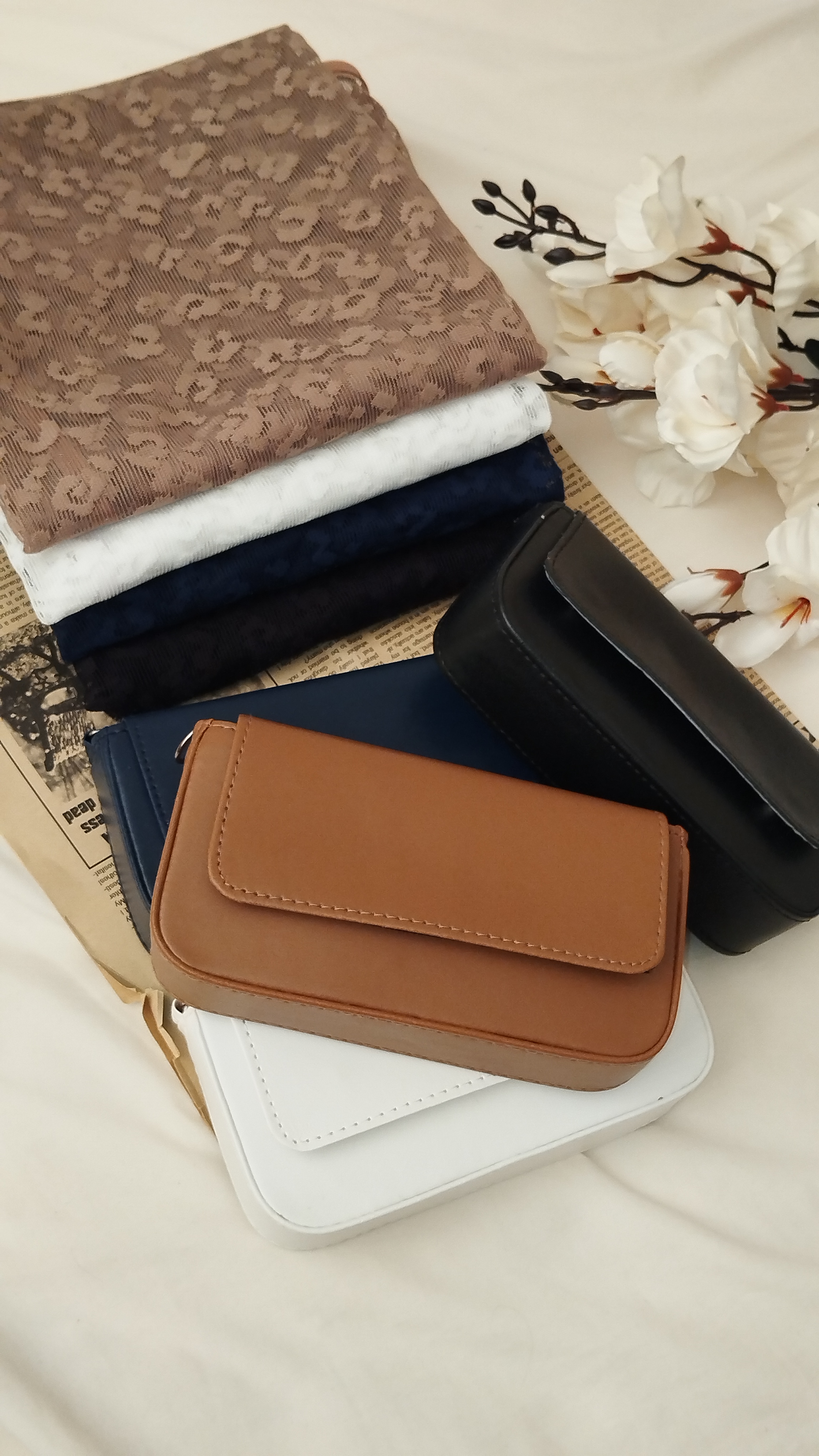 ست شال توری با کیف تک رنگ و دو رنگ