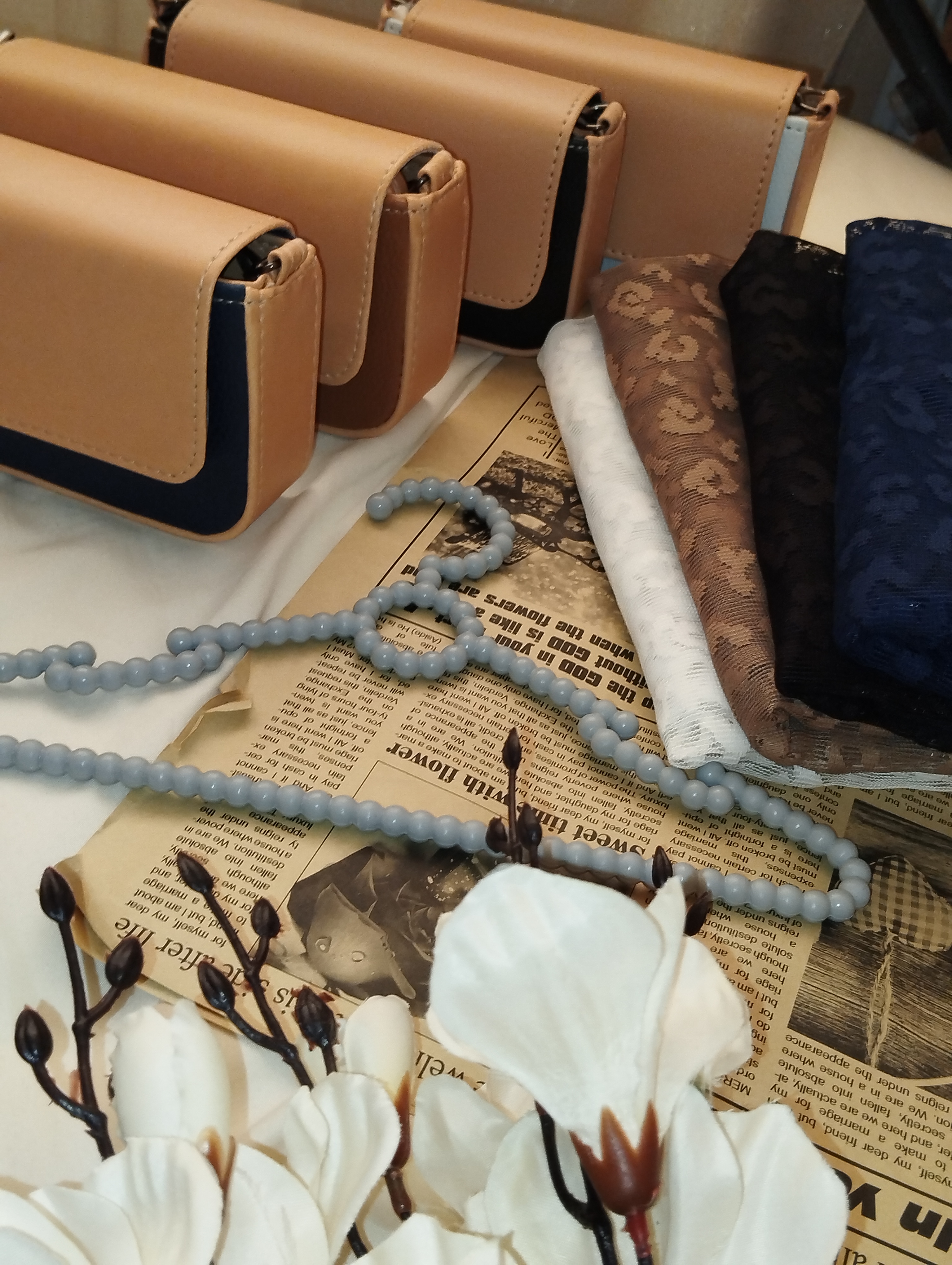 شال توری سورمه ای با کیف دو رنگ سورمه ای