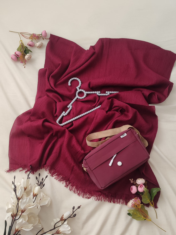 🌷ست زرشکی شیک و با کلاس مخصوص دختر خانومای ساده پسند ، شال از سر و لیز نمیخوره و کاملا با هر لباسی ست میشه