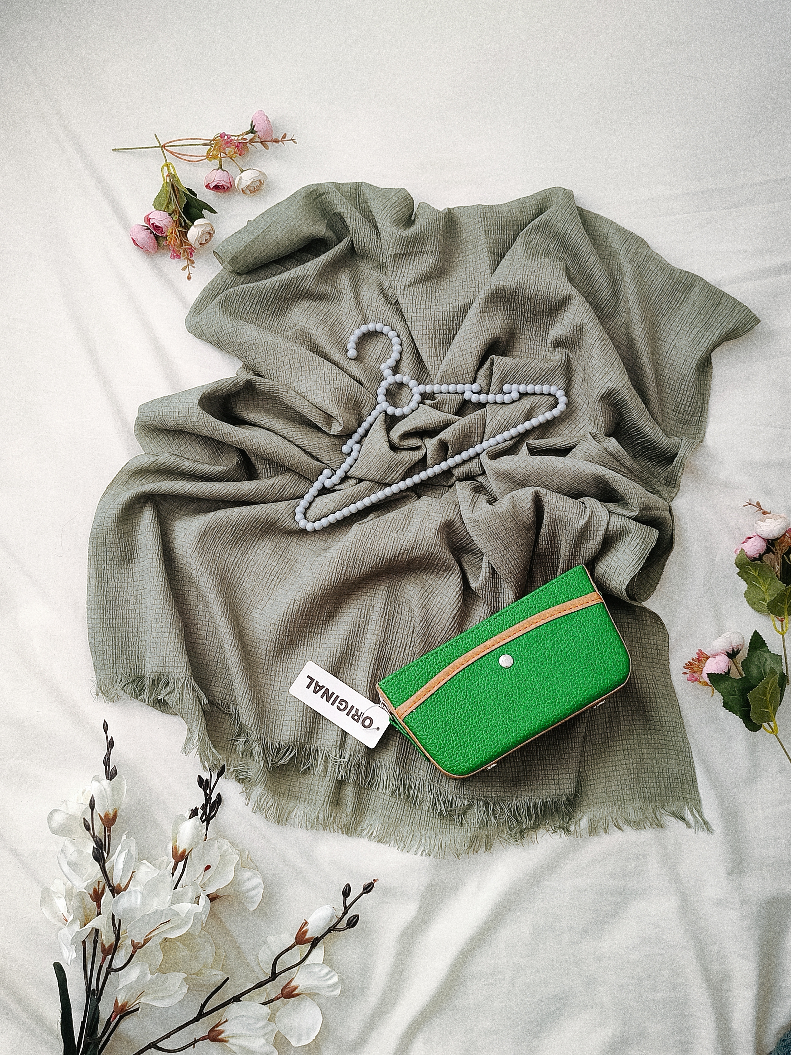 ست کیف و شال پفکی پسته ایناموجود